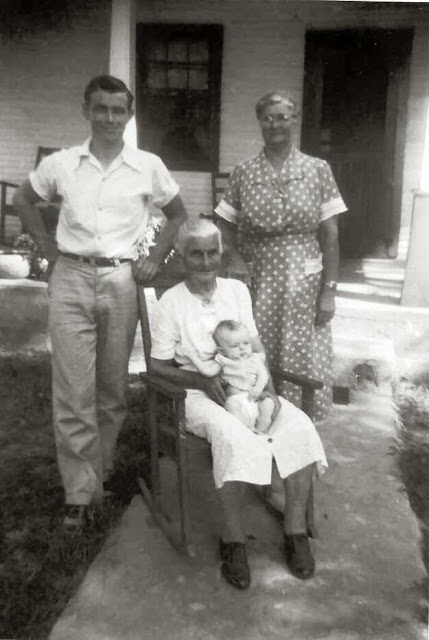 This is a photo of my great grandmother Robison holding me (yep, I'm the baby). My Dad on the left and my grandmother on the right.